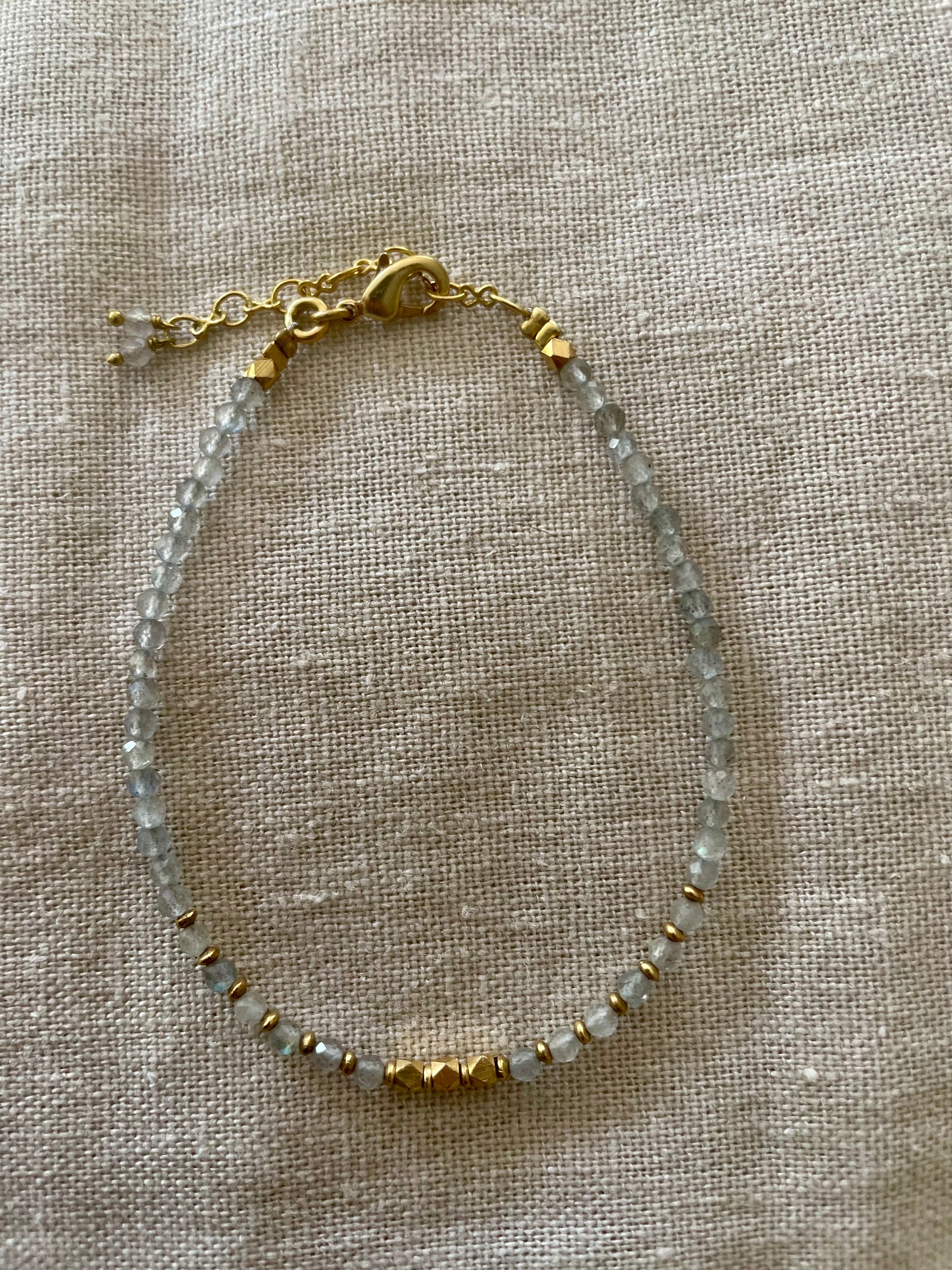 Bracelet délicat orné de petites pierres semi-précieuses aux teintes naturelles.