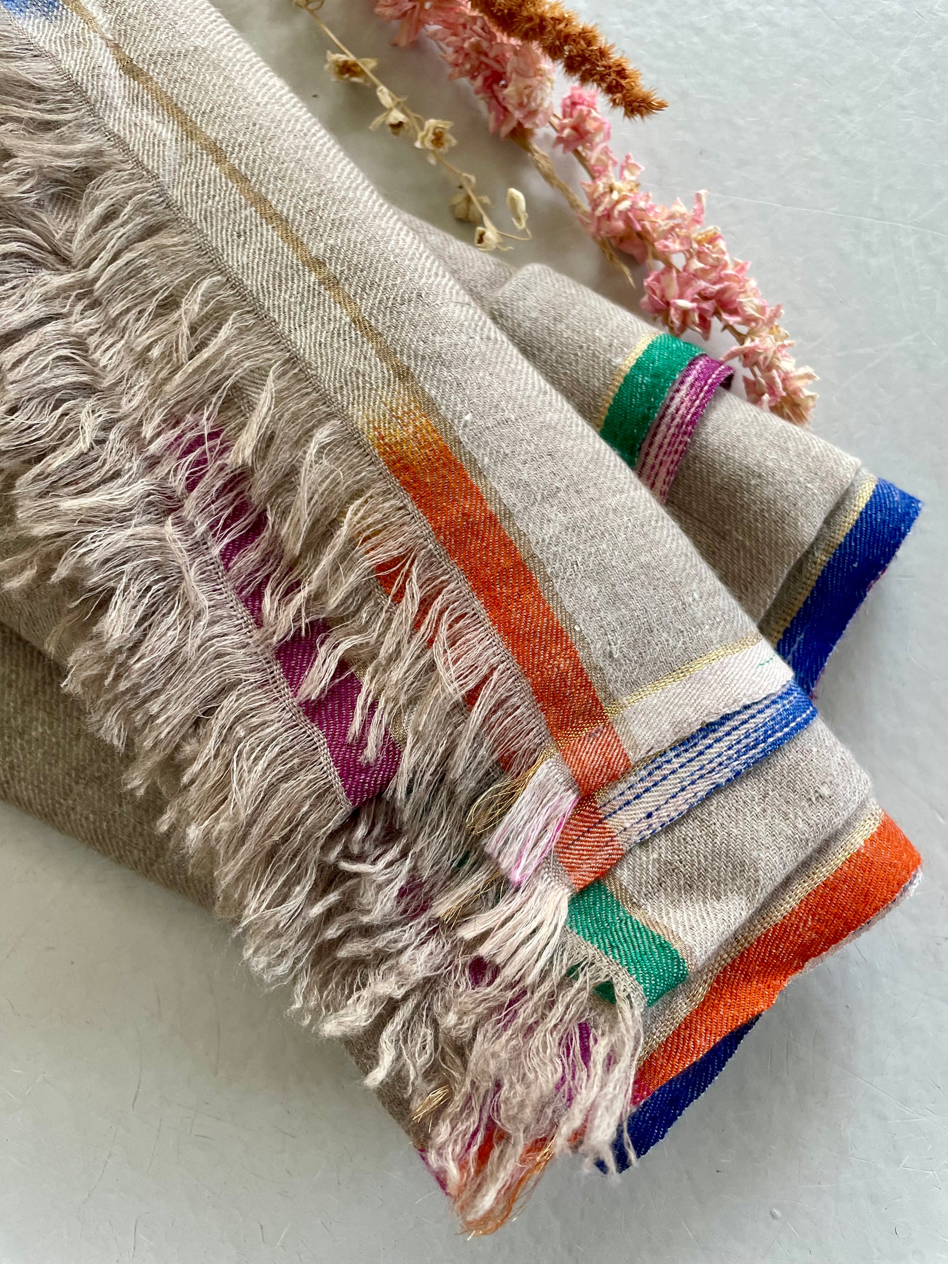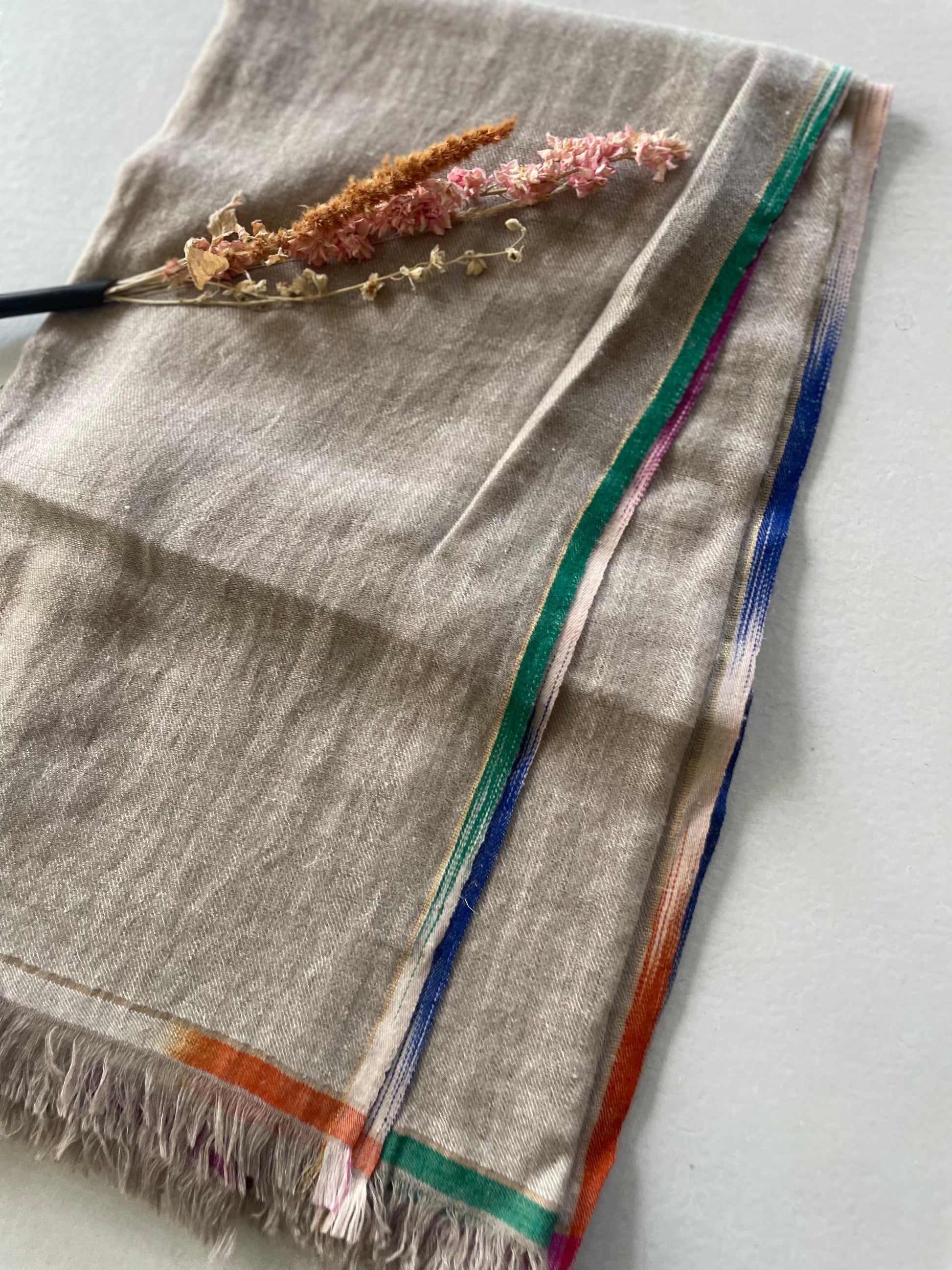 Tissée avec soin selon les traditions artisanales indiennes, cette étole allie confort luxueux et sophistication intemporelle.