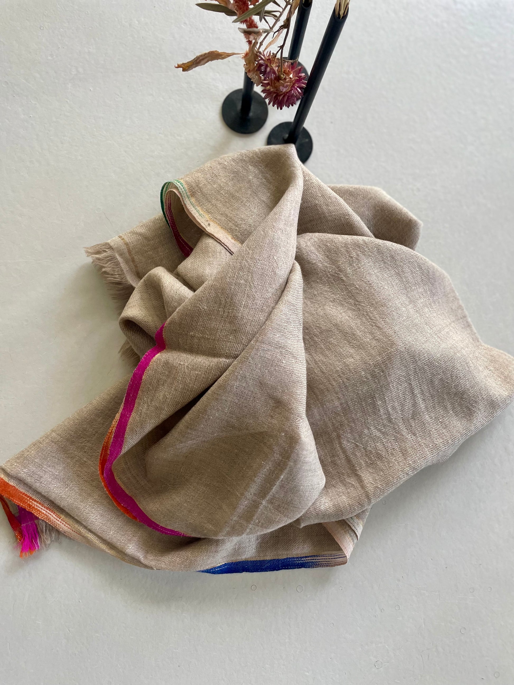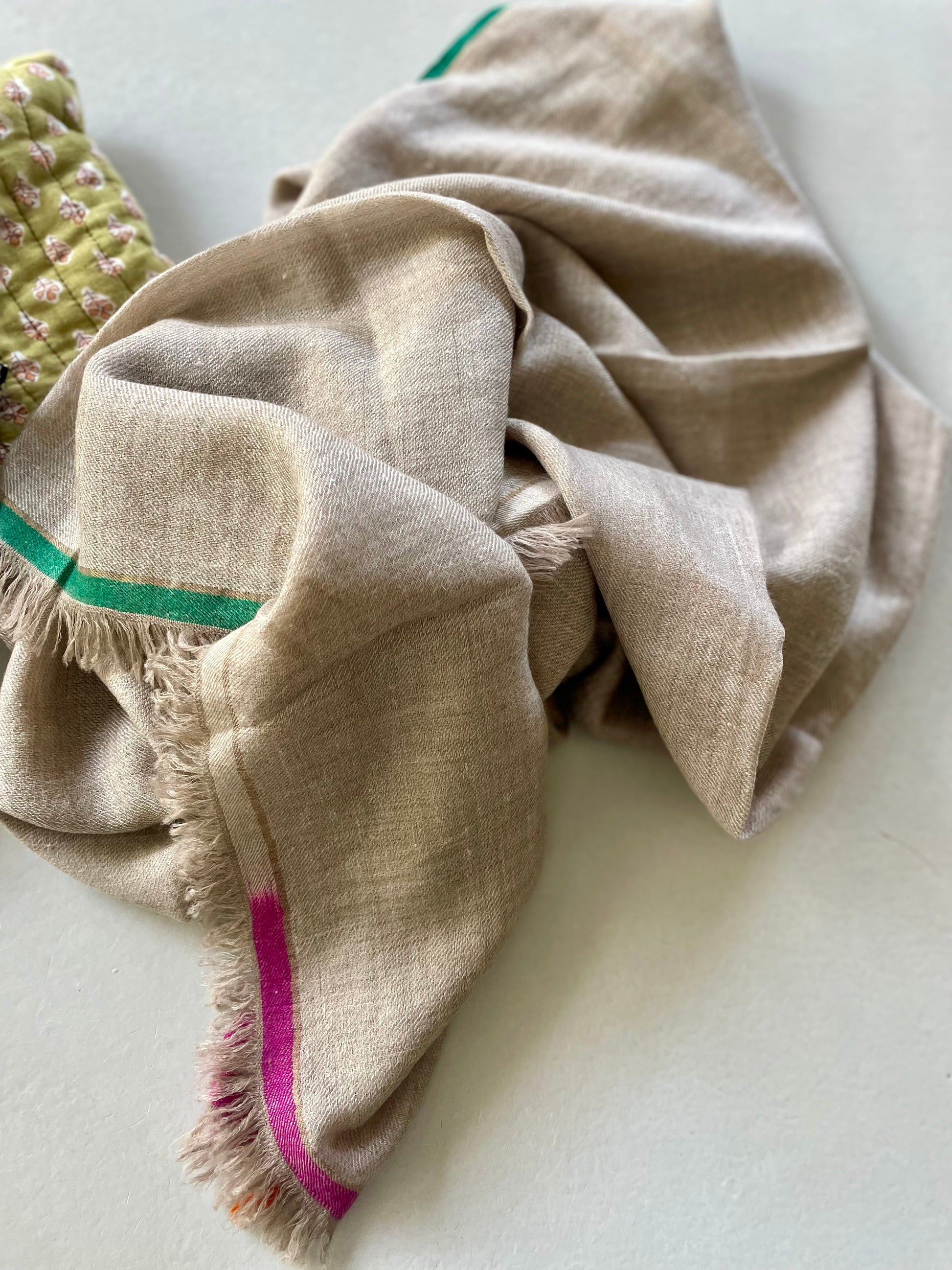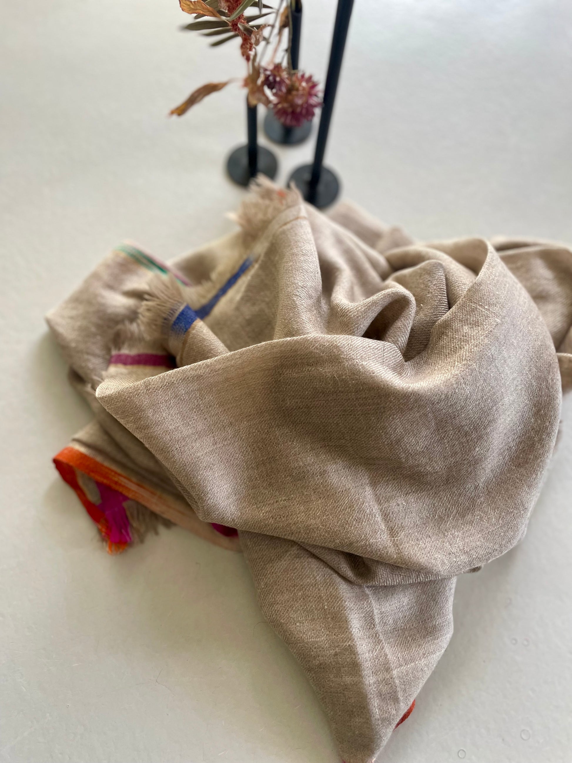 Découvrez cette élégante étole en pur cachemire, teinte ficelle intemporelle.
