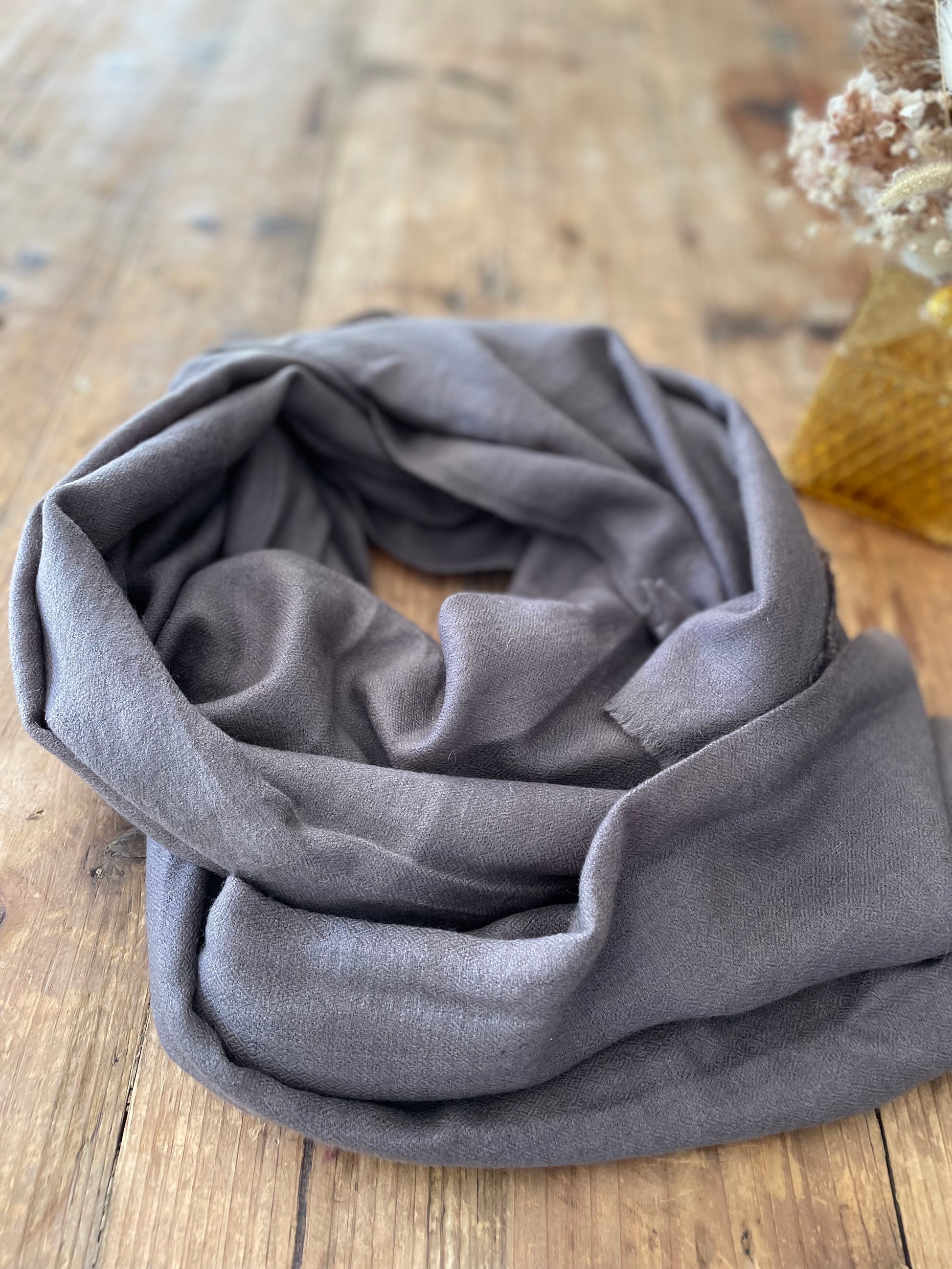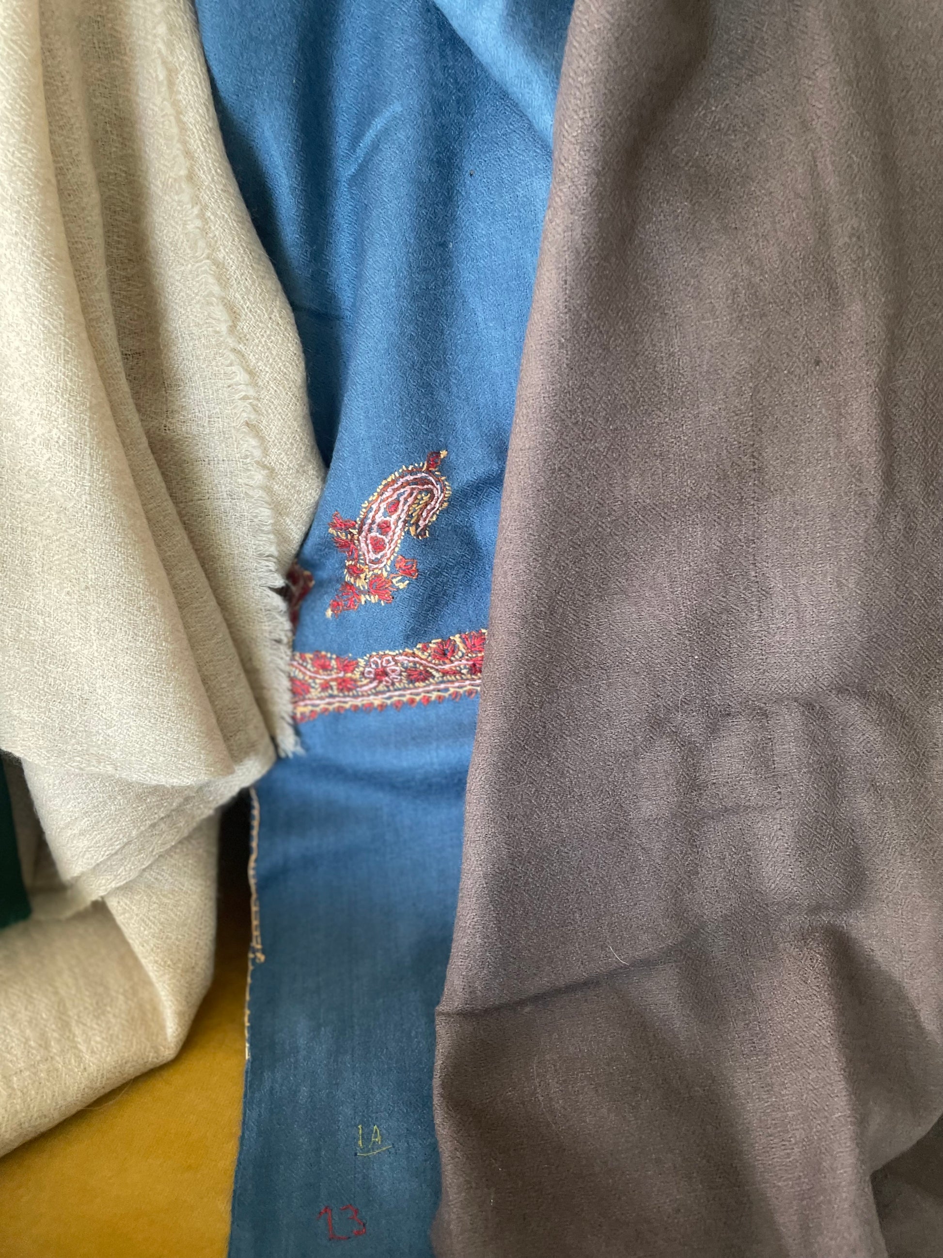Le pashmina 100% cachemire tissé à la main à Srinagar ( nord est de l’inde -chaine de l’Himalaya) par les meilleurs artisans kashmiri, à partir du cachemire ultrafin issu de la toison d’hiver des chèvres pashminas du Ladakh.
