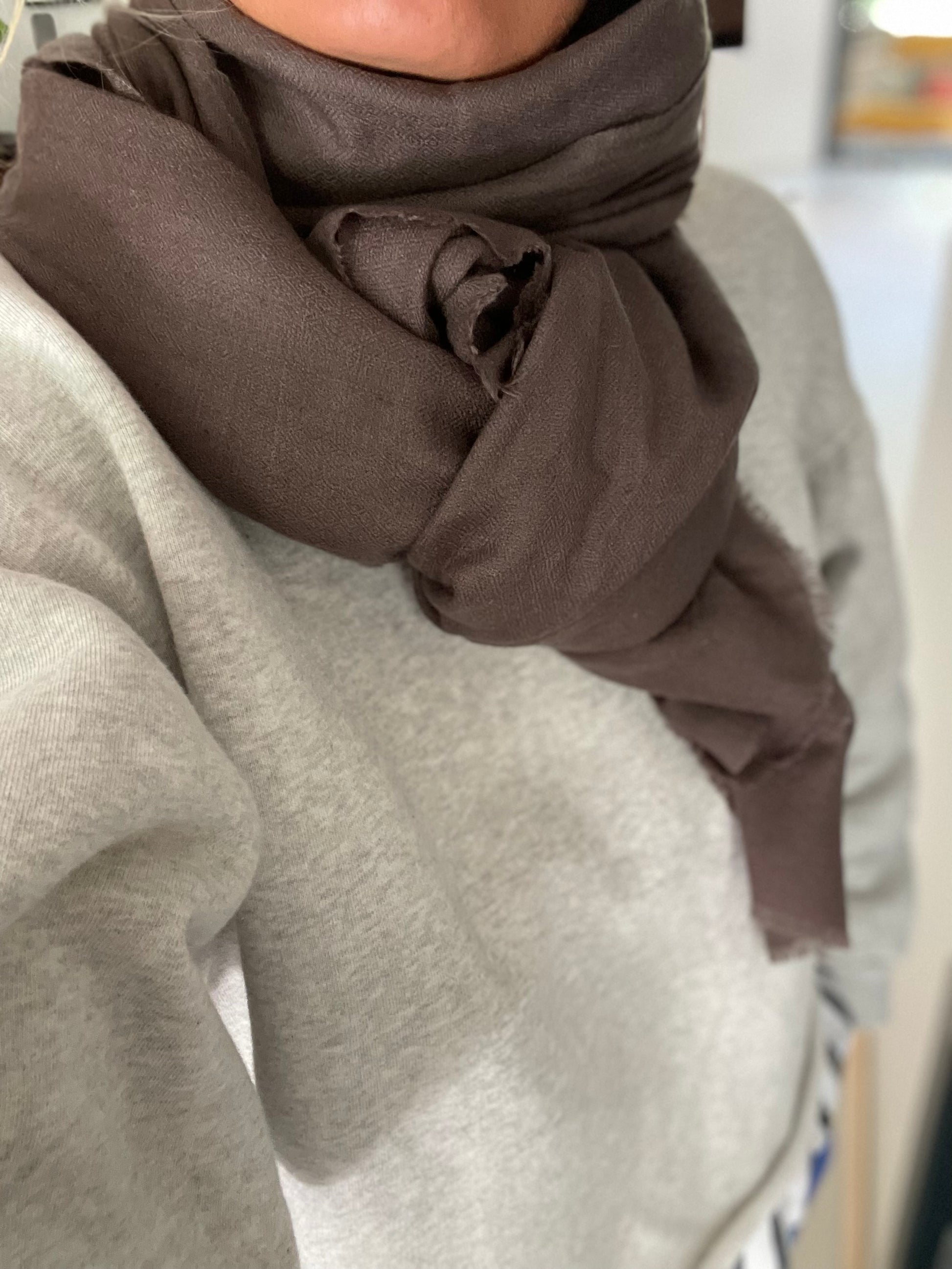 Etole en pur cachemire dans un magnifique marron glacé signée de la main de son artisan. Une douceur incroyable ....