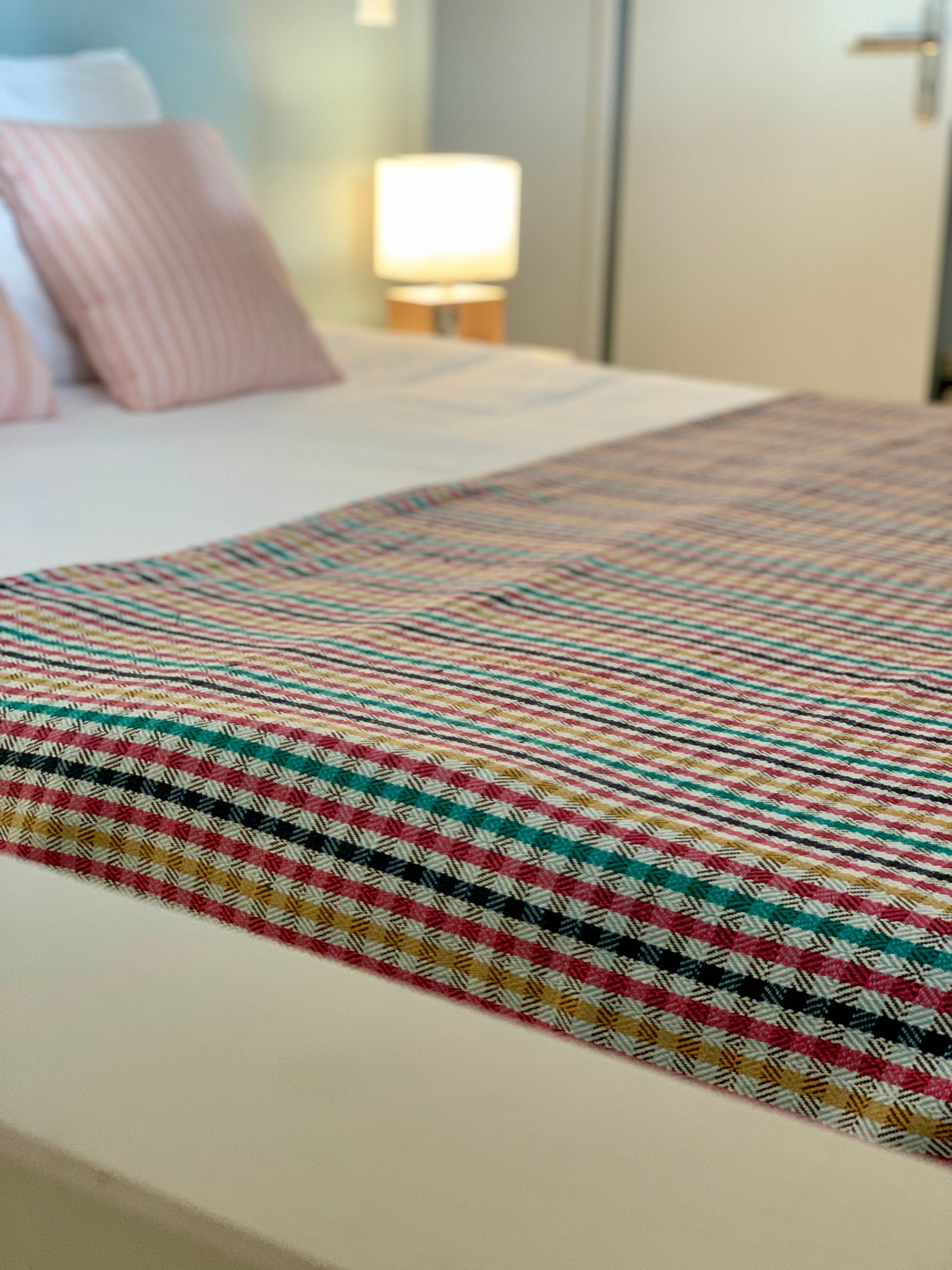 Découvrez notre grand plaid en khadi de coton, une pièce aux dimensions généreuses parfaite pour pour recouvrir les grands lits. Il peut également être posé sur un fauteuil ou par-dessus un canapé.