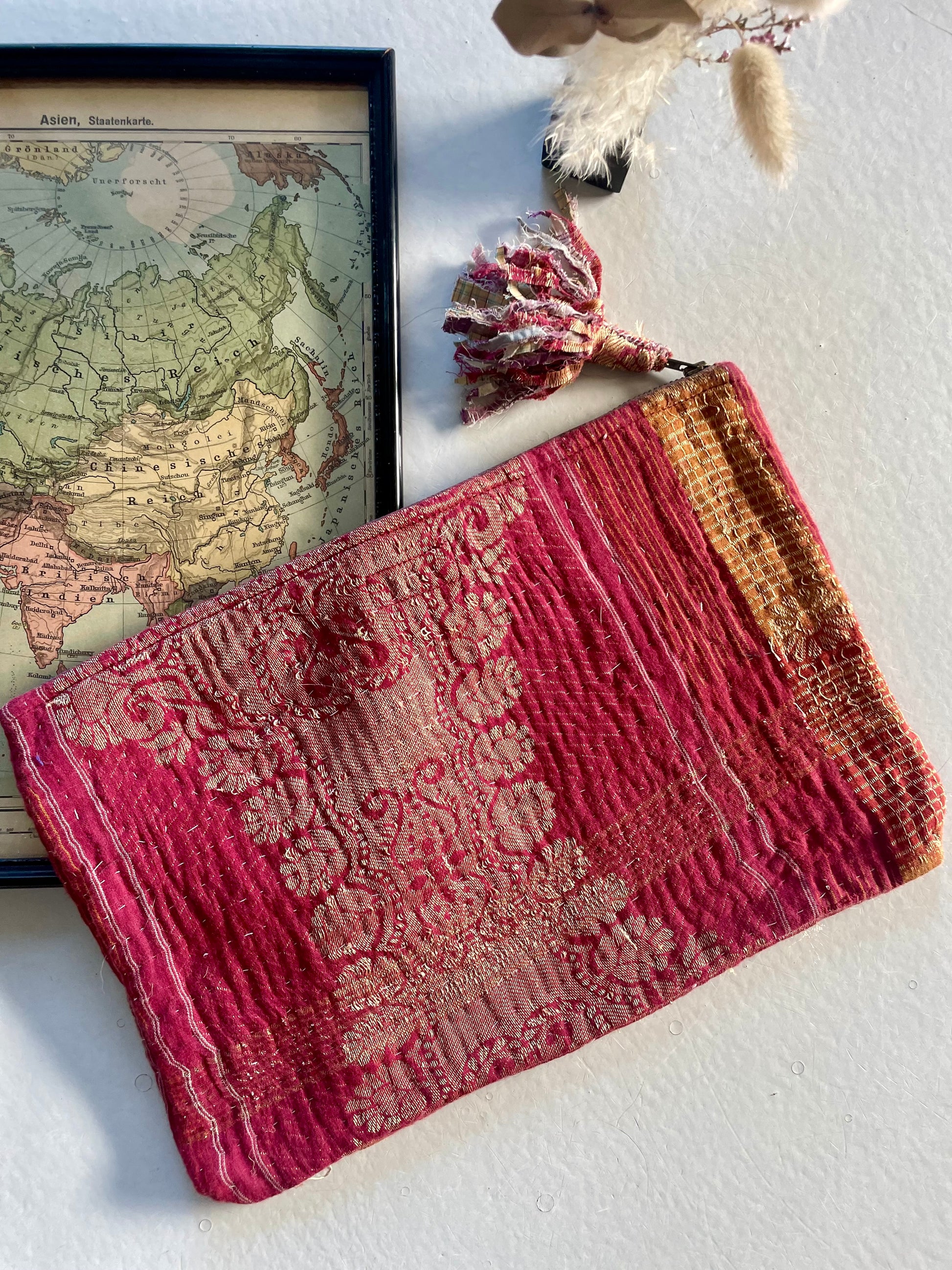 Grande pochette en kantha | bordeaux or