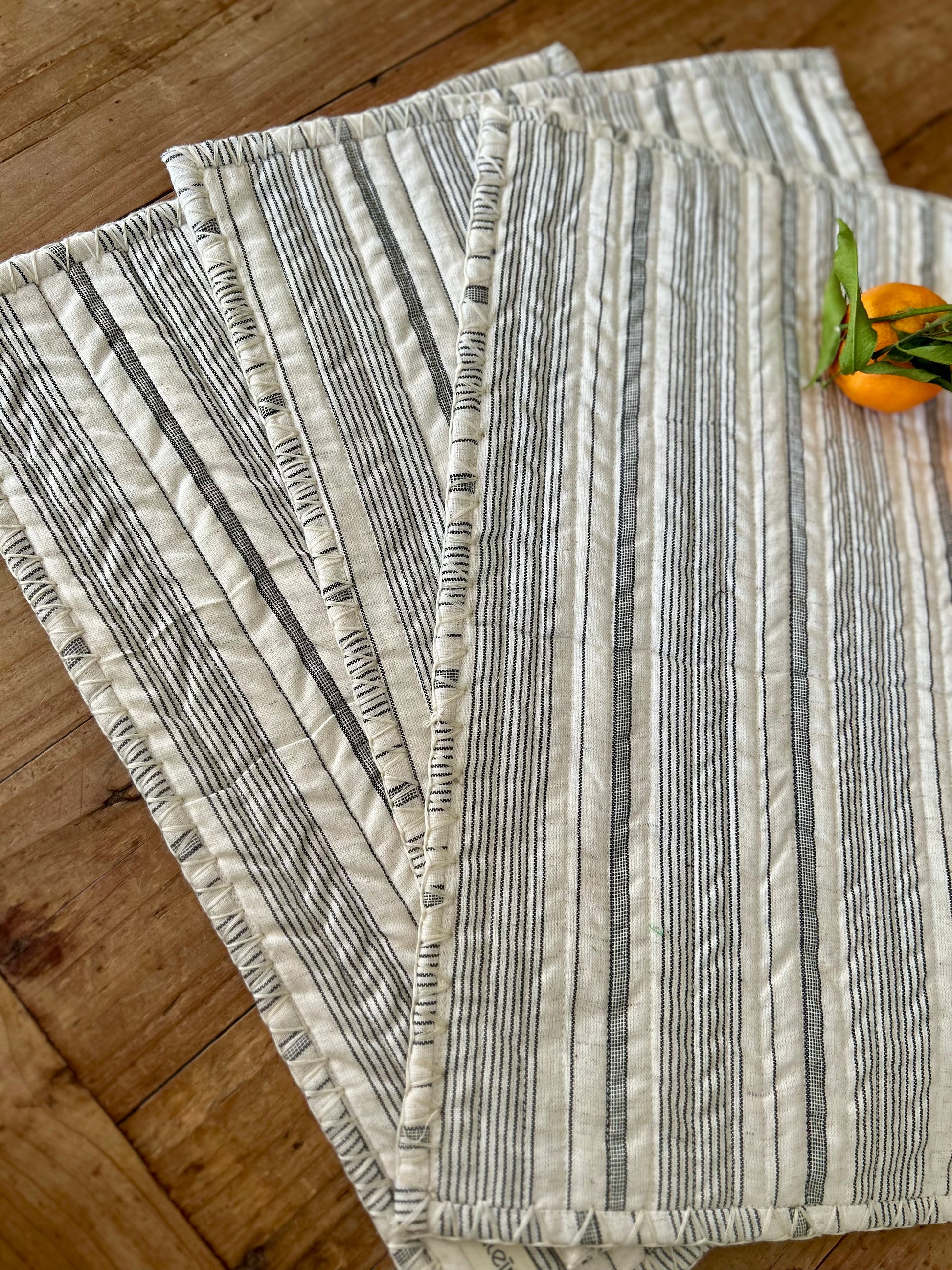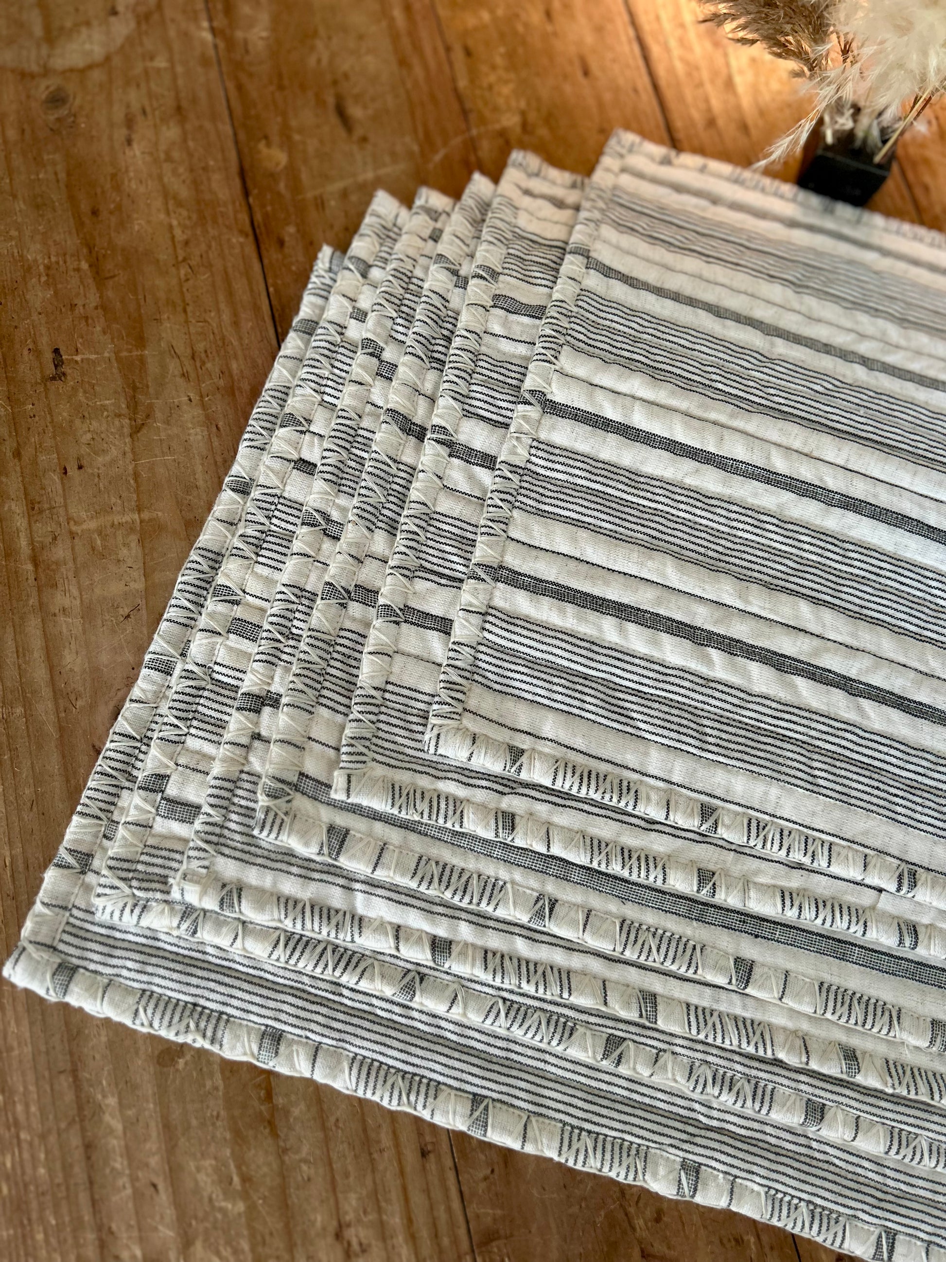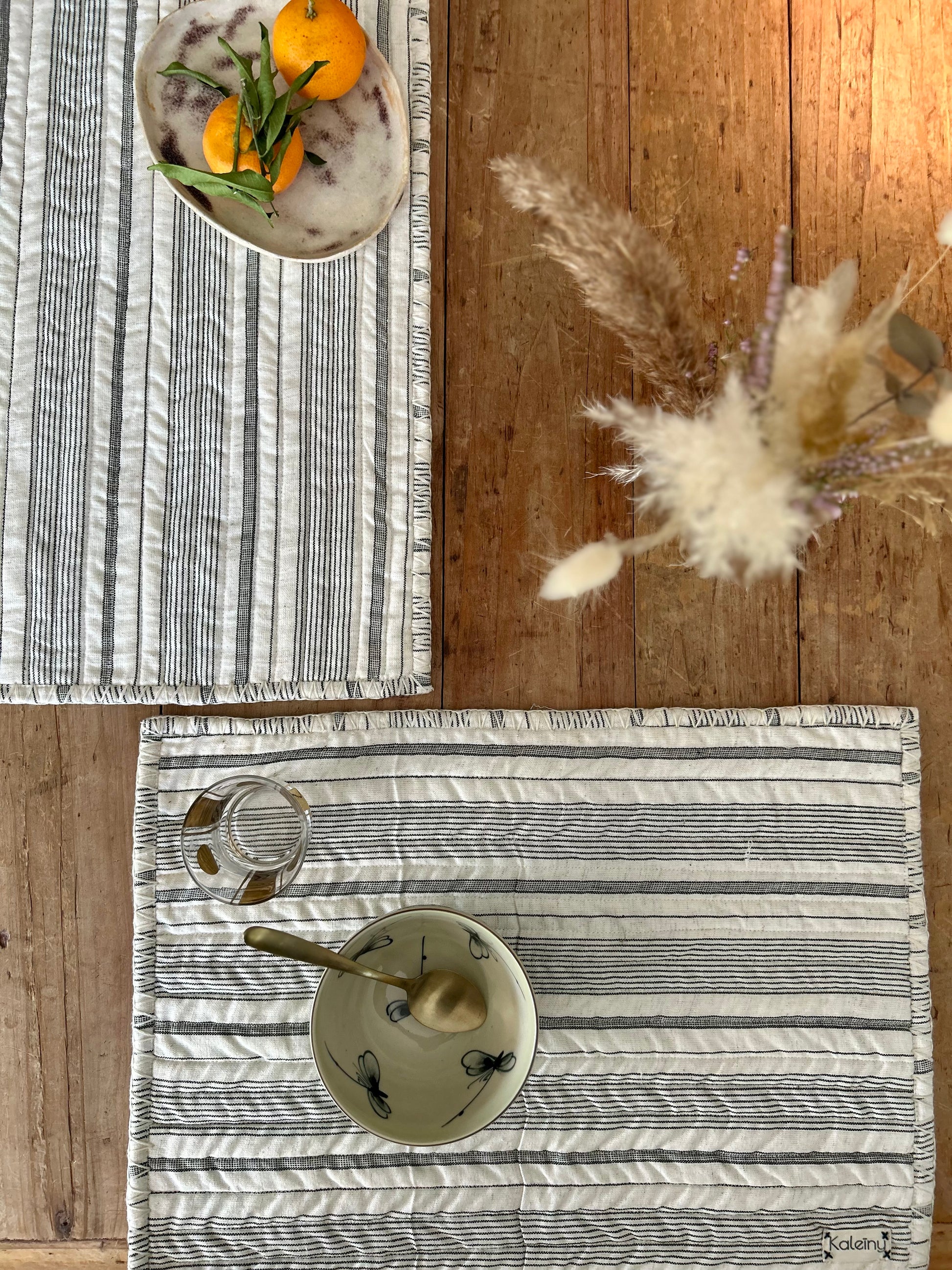 Set de table matelassé à fines rayures blanc cassé & noir | Petit format