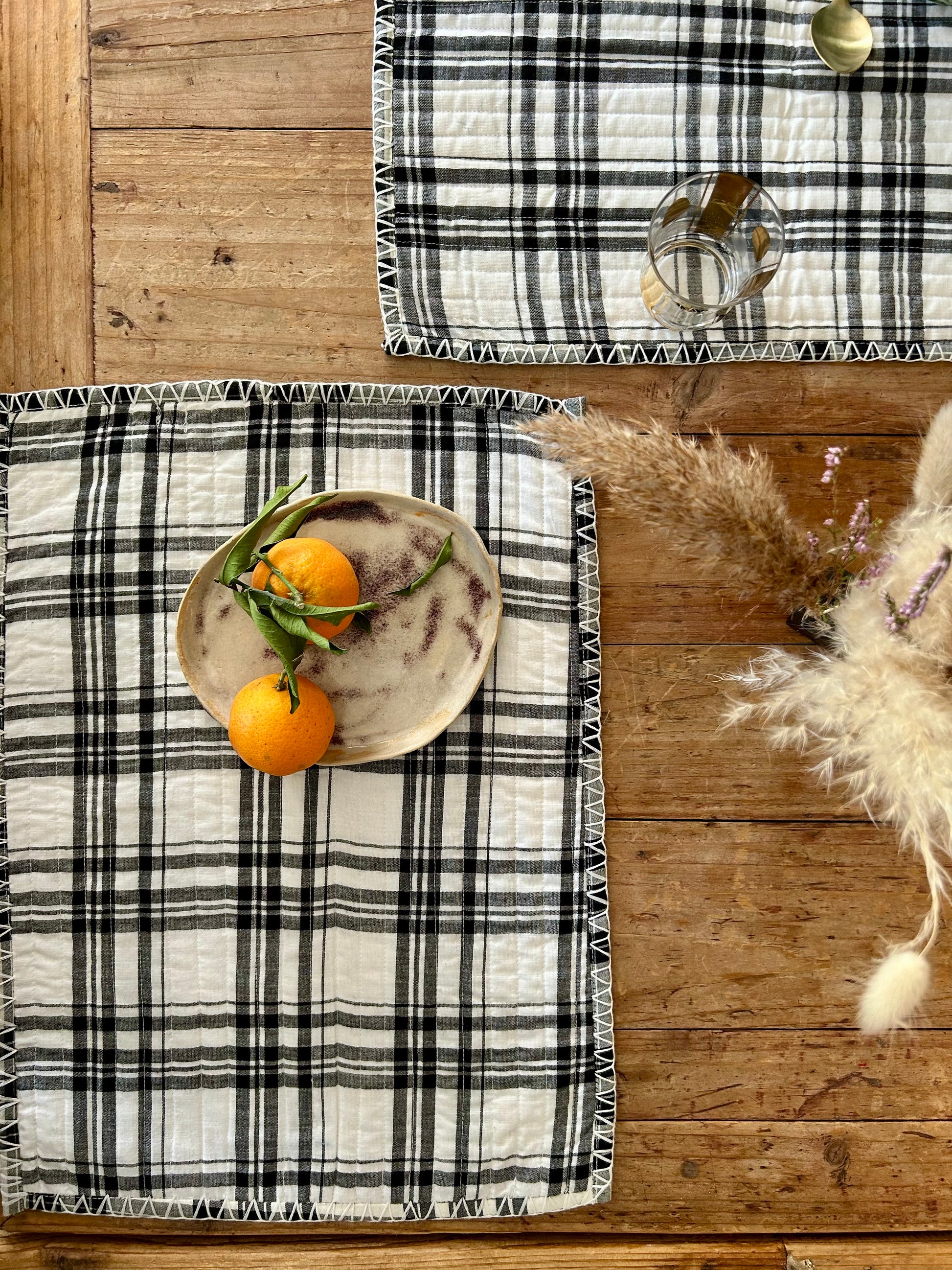 Set de table matelassé à carreaux noir et blanc | Petit format