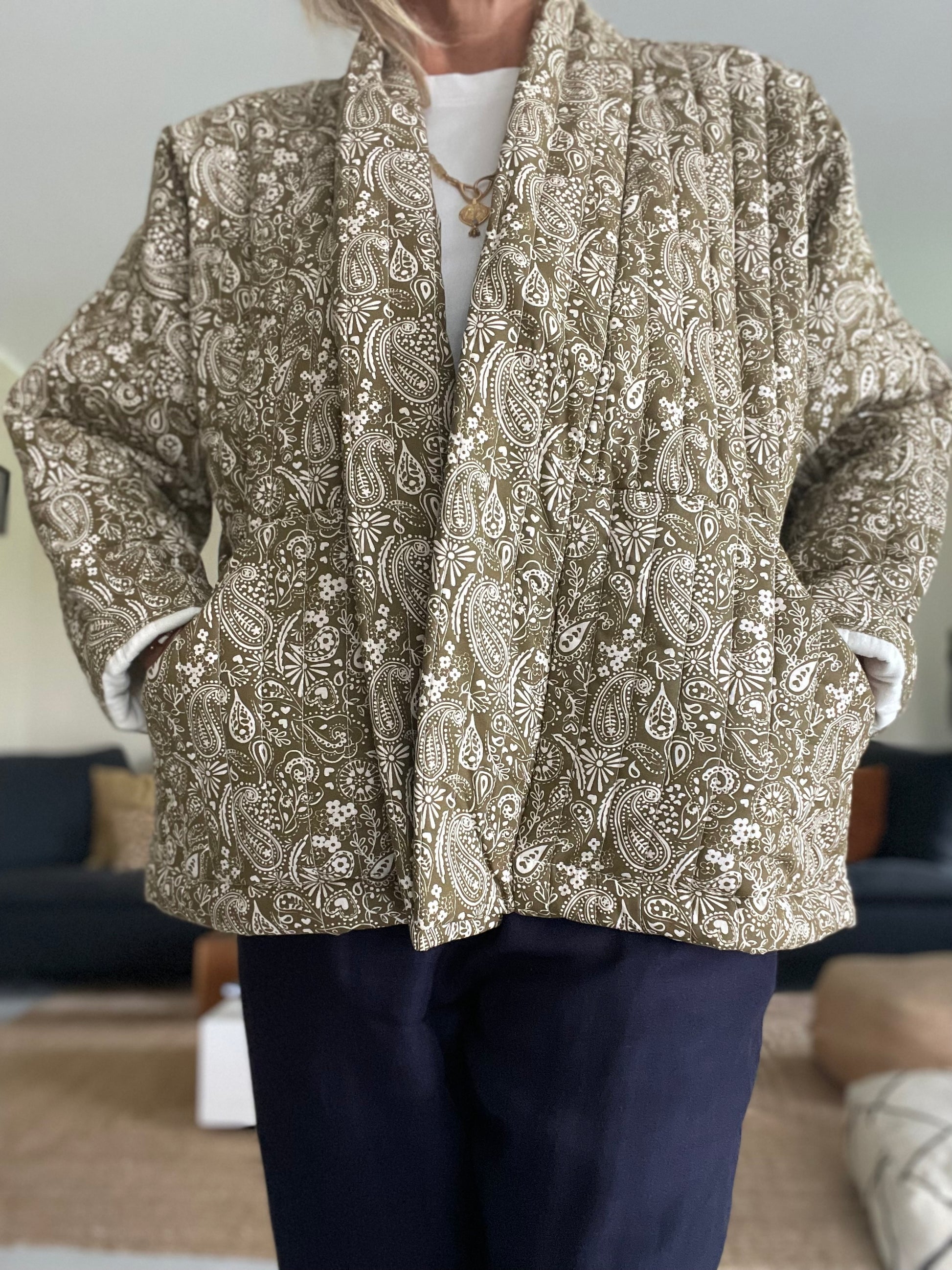 Une veste légère, matelassée, en coton block print… et surtout unisexe 🌿✨